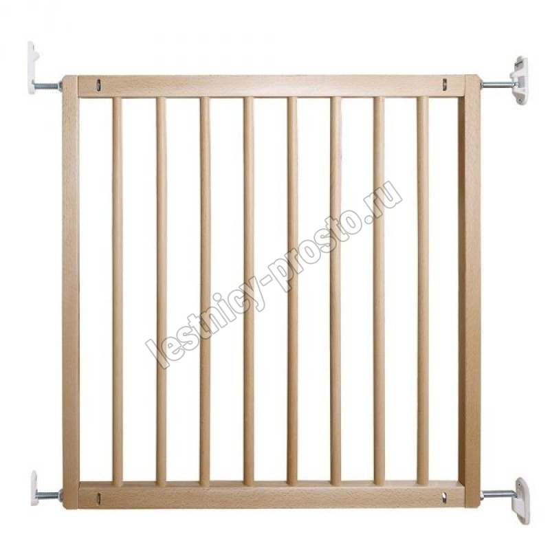 Изделие имеет раздвижную конструкцию с большим диапазоном - от 63.5 до 105 см и может быть установлено в любые дверные или лестничные проемы,  в качестве основного материала используется натуральное дерево (бук) с высококачественной  шлифовкой.