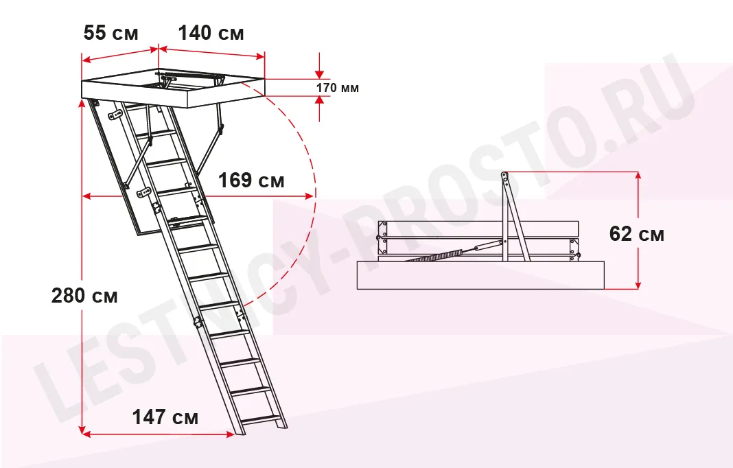 Чердачная лестница OMAN POLAR 55×140 см, h-280 см