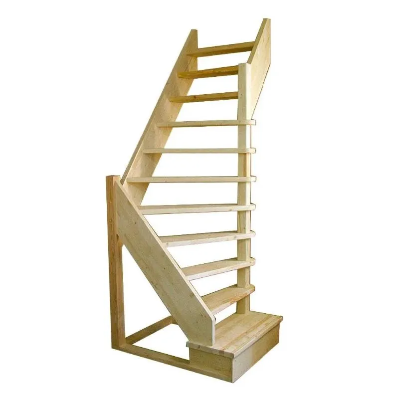 Лестница складная трёхсекционная, изготовлена из сосны. Термоизоляционная крышка типа "сэндвич" утеплена пенопластом, облицована с двух сторон ДСП белого цвета. Короб люка с однослойным уплотнителем. Все металлические элементы лестницы покрыты порошковой краской, ступени лестницы имеют антискользящие насечки и закреплены в столярное соединение «ласточкин хвост», что позволяет выдерживать нагрузку до 150 кг. Деревянный стержень для открывания лестницы в комплекте.