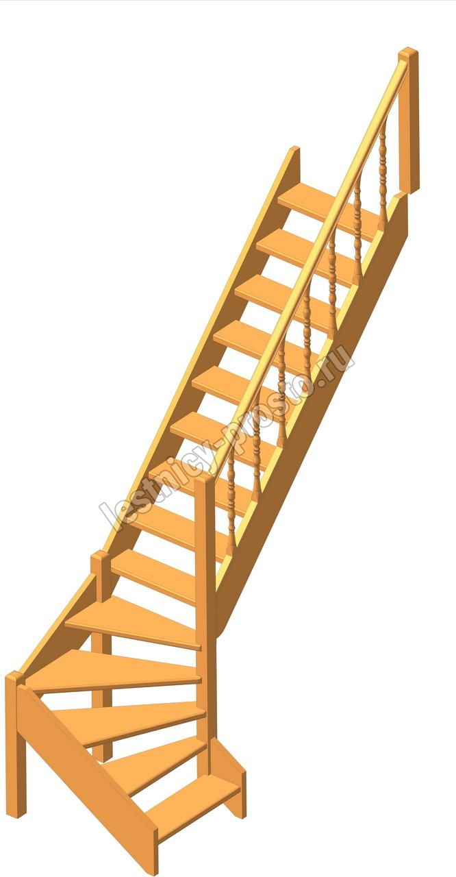 Деревянная межэтажная лестница ЛЕС-07 2880-3085 проем 2550-830, Сосна