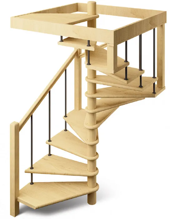 Компактная деревянная лестница с металлическими стойками перил. Легко собирается и занимает небольшое пространство на первом и втором этаже. Фиксированный квадратный короб на верхнем уровне обеспечивает дополнительную прочность конструкции. Монтаж осуществляется силами двух человек на объекте по указаниям, приведенным в паспорте на лестницу.