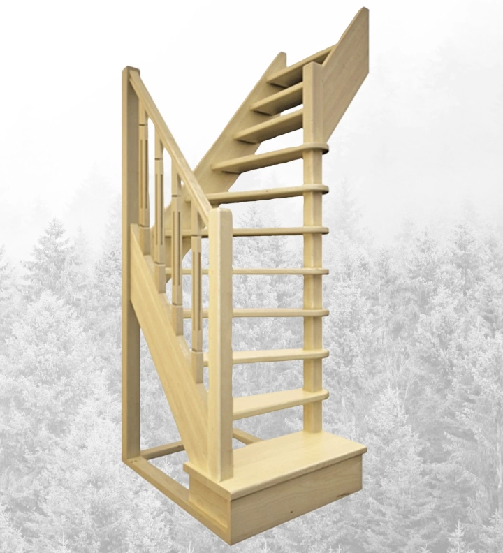 Базовый комплект включает в себя деревянные элементы лестницы, подступенки и ограждения без какого-либо покрытия. Лестница поставляется в разобранном виде, упакованная в ящик. Монтаж производится силами двух человек, в соответствии с указаниями, приведёнными в паспорте лестницы.