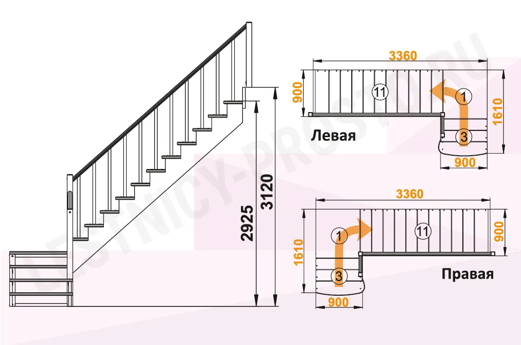 Высота лестницы 2925 - 3120
