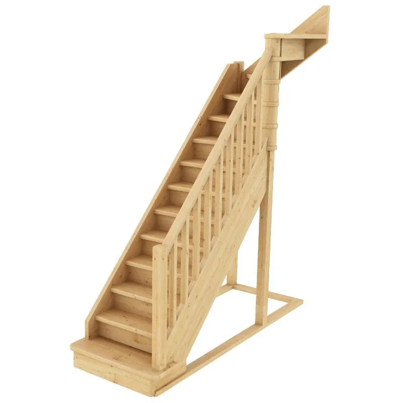 Лестница поставляется в разобранном виде. Элементы лестницы без какого-либо покрытия.