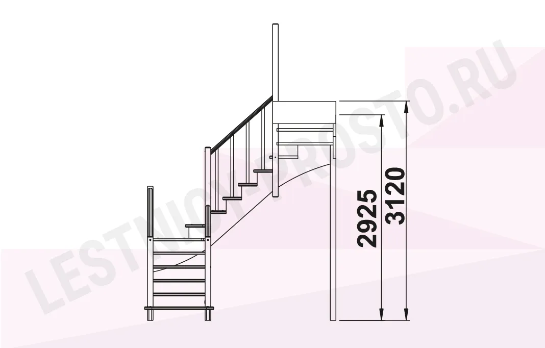 Схема лестницы К-009М с поворотом налево