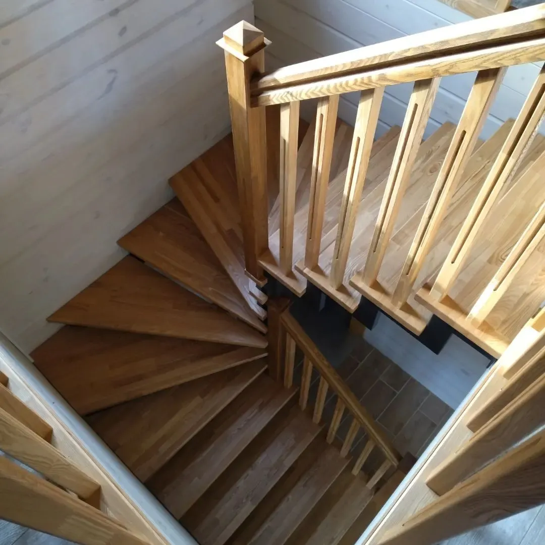 Ступени и поручень лестницы изготовлены из дуба, остальные элементы из сосны.