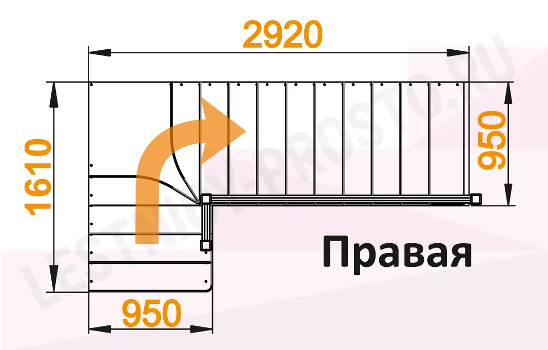 Лестница К-031М/4 с поворотом направо