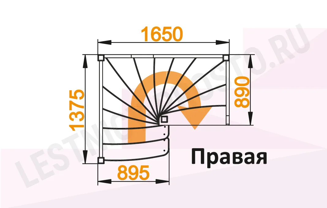 Схема лестницы ЛС-01М с поворотом направо