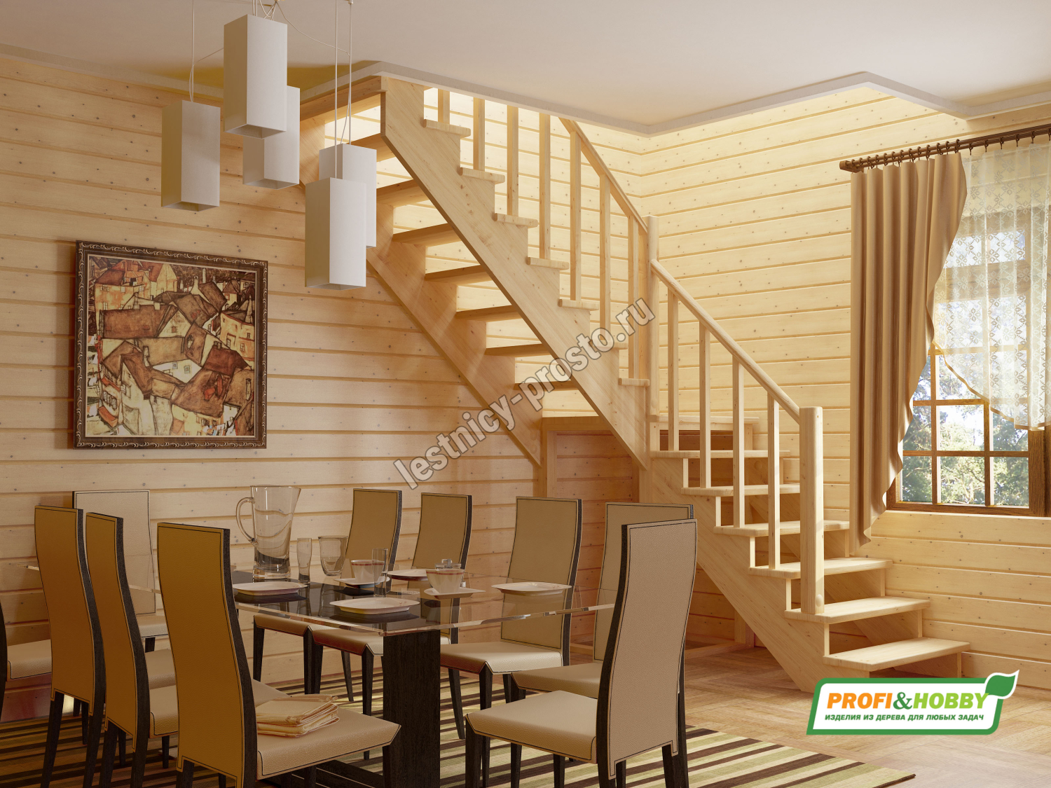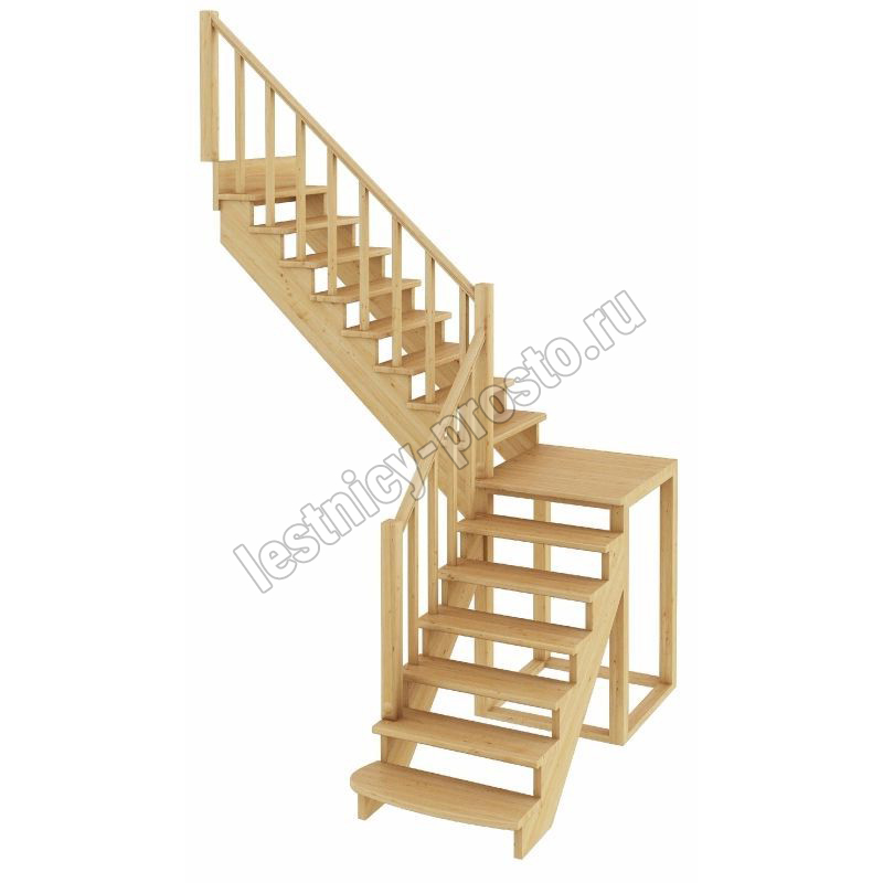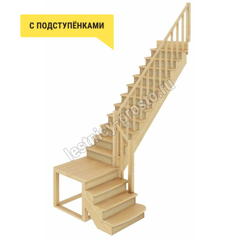 Базовый комплект включает в себя деревянные элементы лестницы с подступёнками и ограждения без какого-либо покрытия.