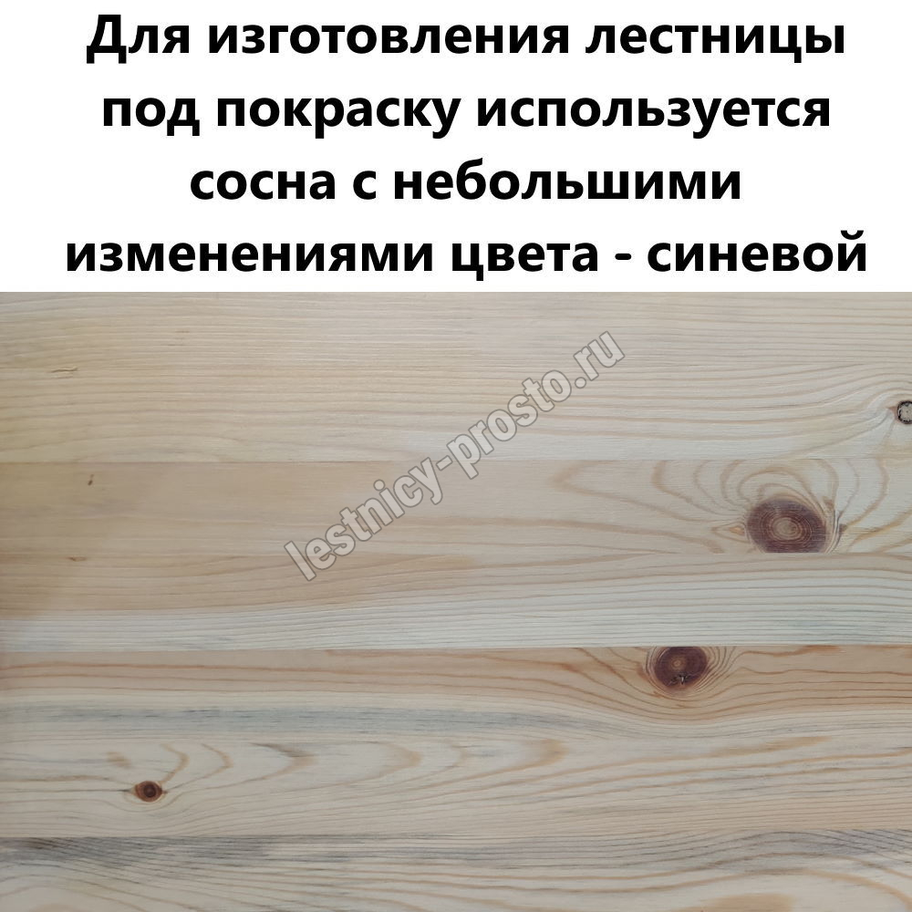 Обратите внимание! Данный вариант изготовлен из сосны эконом-класса, что выражается в неоднородности цвета и заметных темных областях на древесине - эта особенность никак не отражается на прочности лестницы, но может быть заметна при покрытии прозрачными средствами или покраске в светлые цвета.