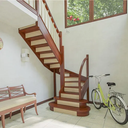 возможна комбинированная лестница: из сосны (ступени бук, ясень, дуб);