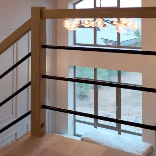 В комплекте: 3 прямых деревянных столба без какого-либо покрытия и профильный поручень без покрытия, комплект из 3 ригелей из стали (окрашены в цвет каркаса или хром по желанию) диаметром 12 мм. , необходимая фурнитура.
