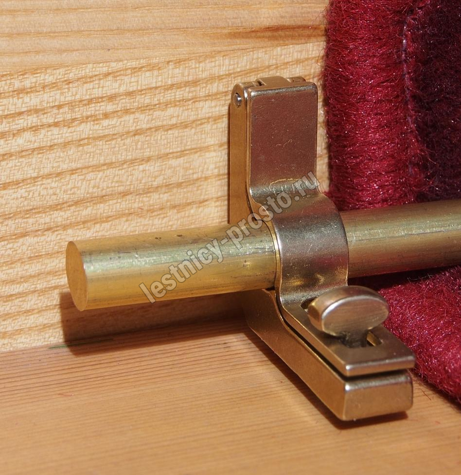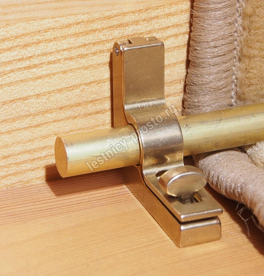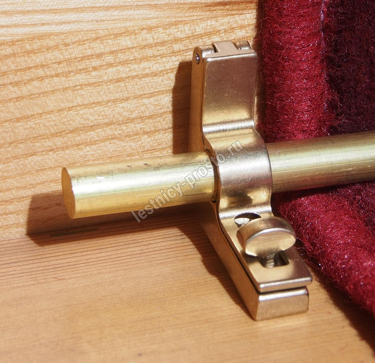 Ковродержатель комплектуется двумя держателями из латуни цвета золото, а также цельным прутком из латуни длиной от 201 до 250 см. Конструкция является сборно-разборной не требующей демонтажа креплений, что делает ее долговечной и очень удобной для чистки ковров и ковровых покрытий.