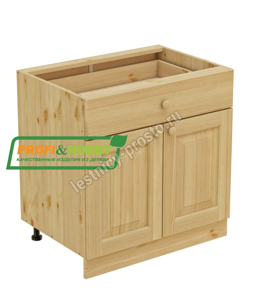 Тумба изготовлена из 100% массива дерева, без шпона и без МДФ/ДСП.