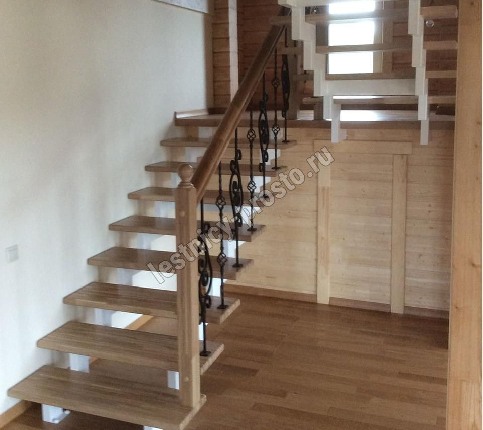 Ступени этого варианта лестницы изготовлены из сращенного бука категории АВ, без какого-либо покрытия.