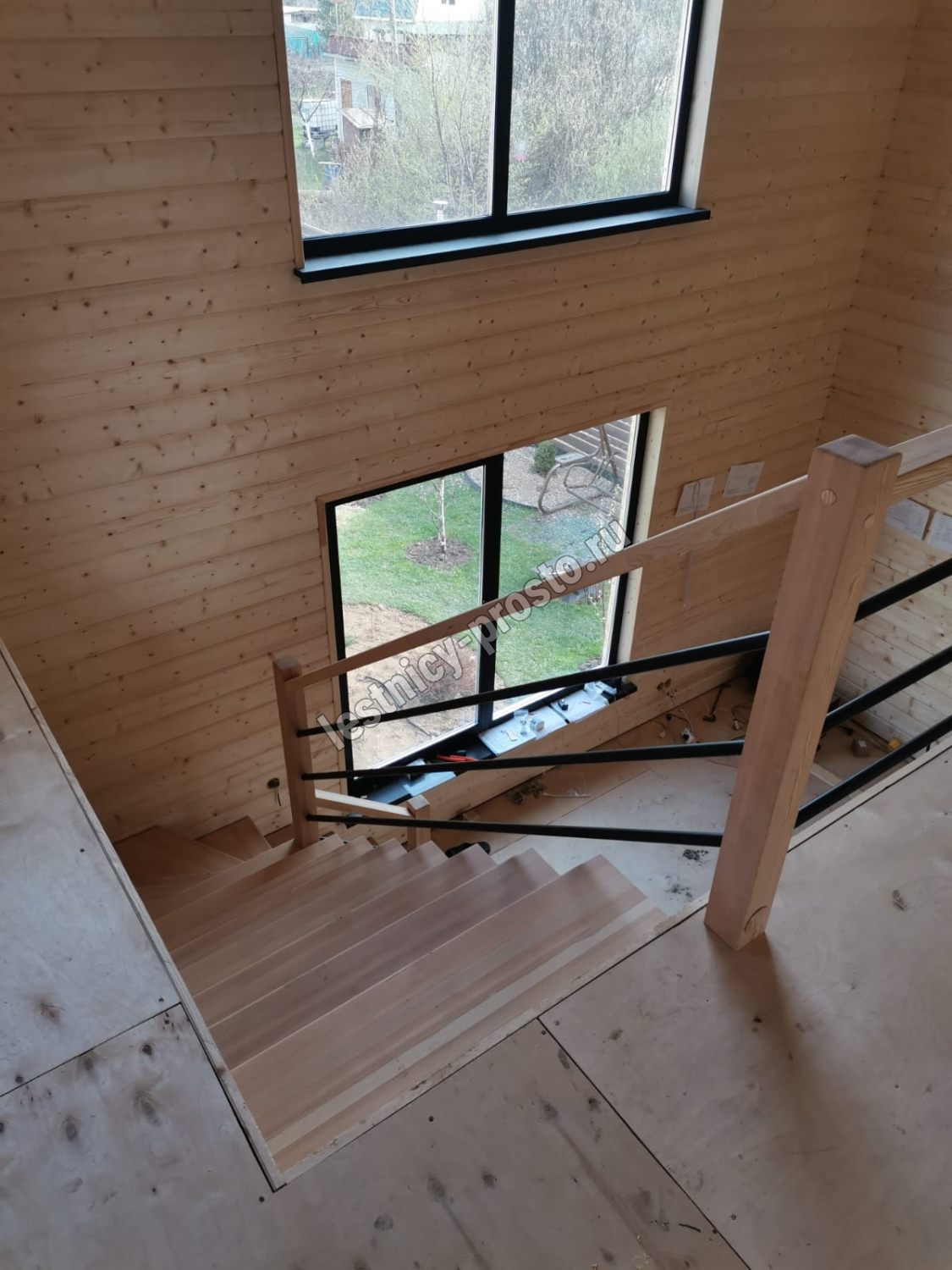 Лестница PROSTO MONO STEP TRINITY г-образная забежная, ступени лиственница с ограждением