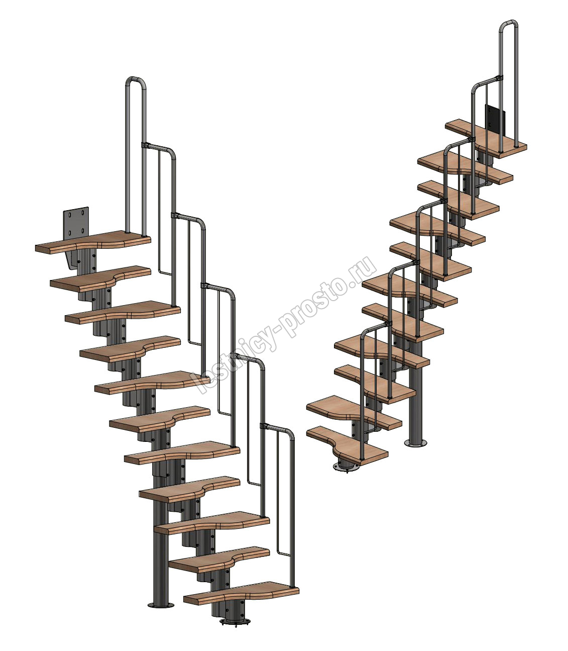 Лестница Prosto Urban Black гусиный шаг 700 мм, h198-288 см (11 ступеней), бук