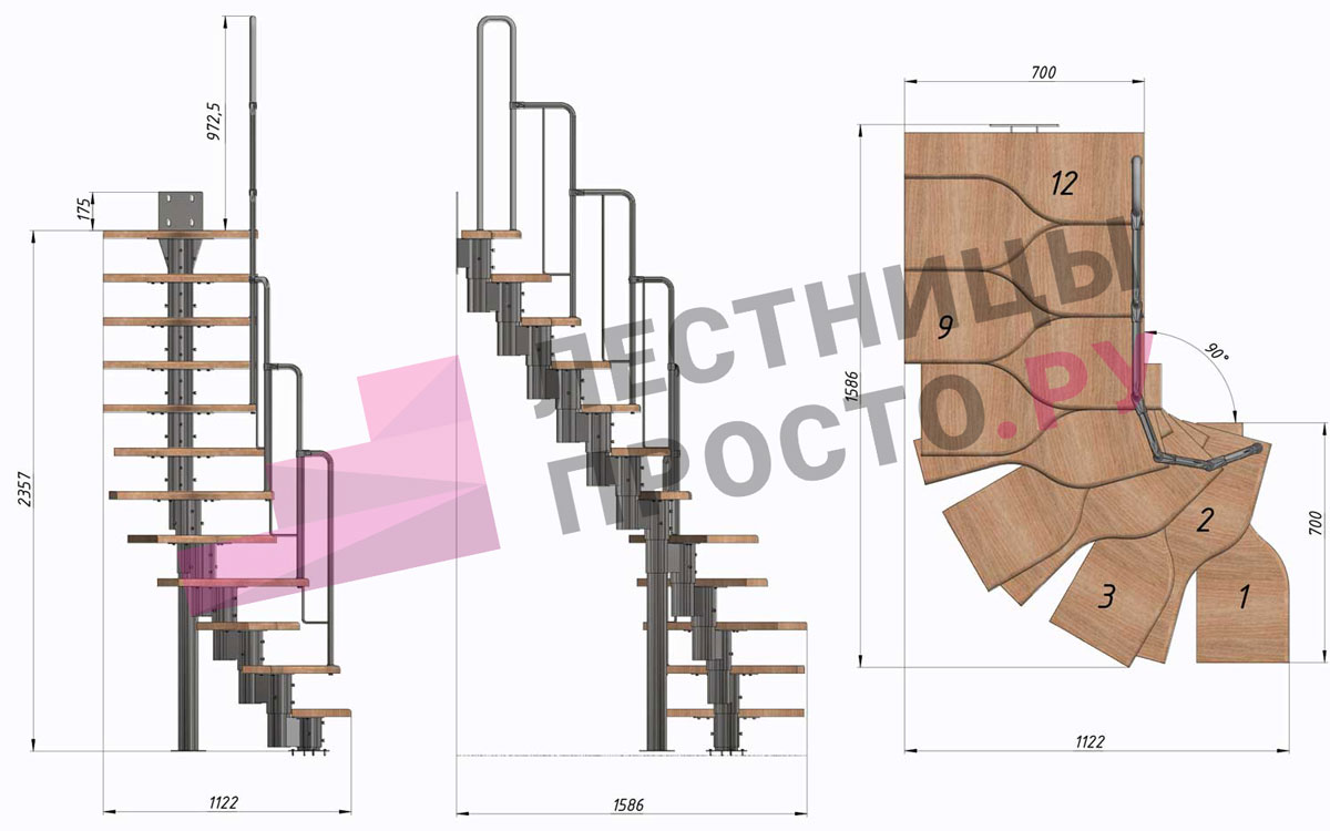 соответствует картинке, но вы не ограничены в его выборе. Лестницу можно приобрести и без ограждения, и с любым другим. Устанавливать на такую лестницу можно почти всё, начиная от классических деревянных балясин и заканчивая эксклюзивными коваными изделиями.