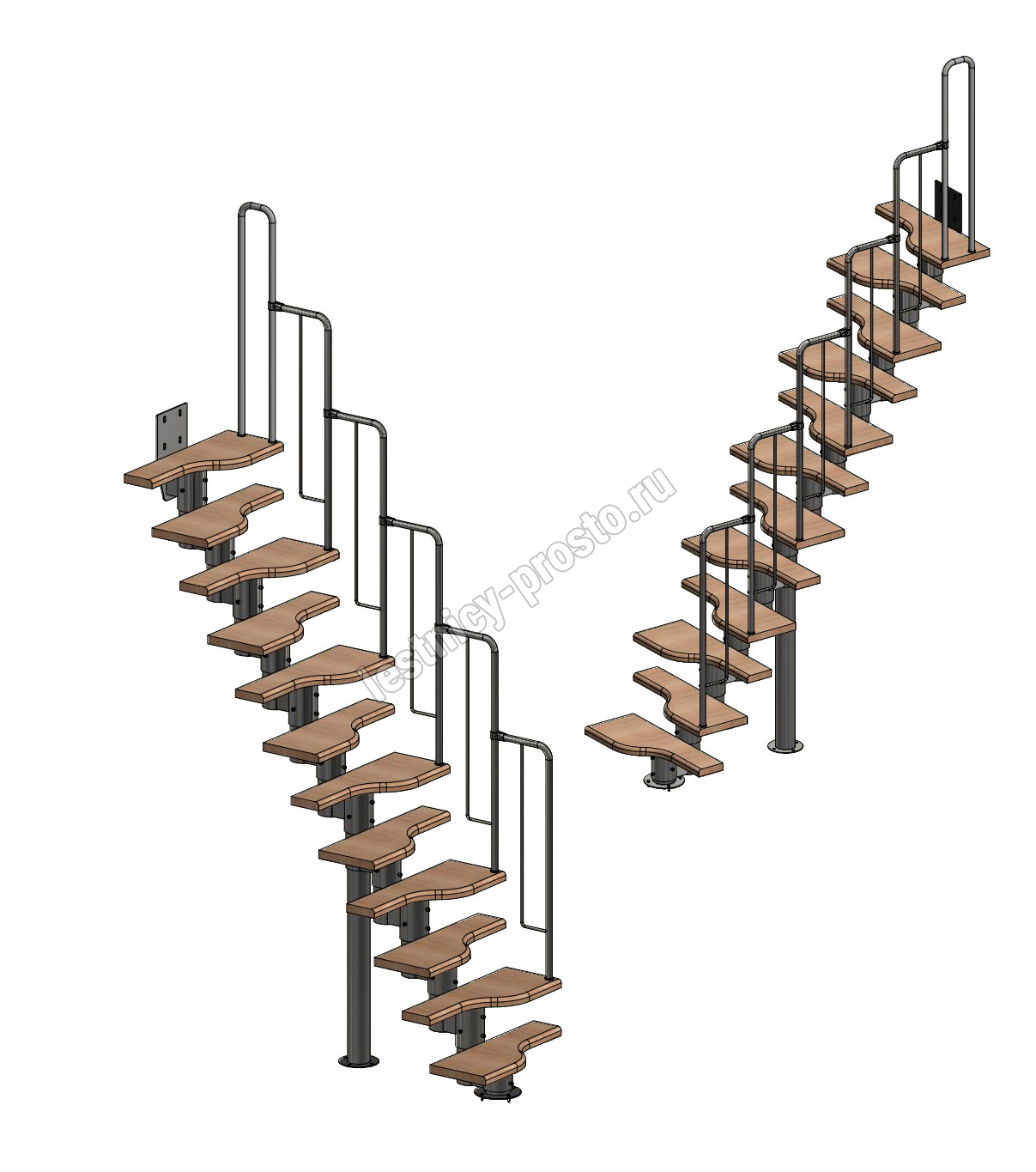 Лестница Prosto Urban Black гусиный шаг 700 мм, h216-312 см (12 ступеней), берёза мультиплекс