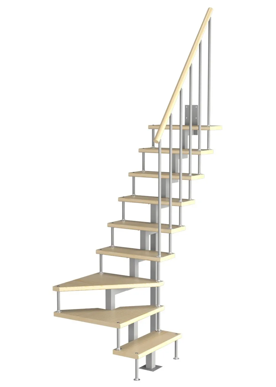 - Возможность устанавливать лестницу как прямую, так и с поворотом внизу или вверху; при этом нужно понимать, что поворот менее удобен, чем прямой участок лестницы.