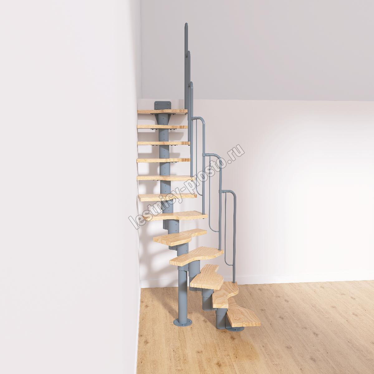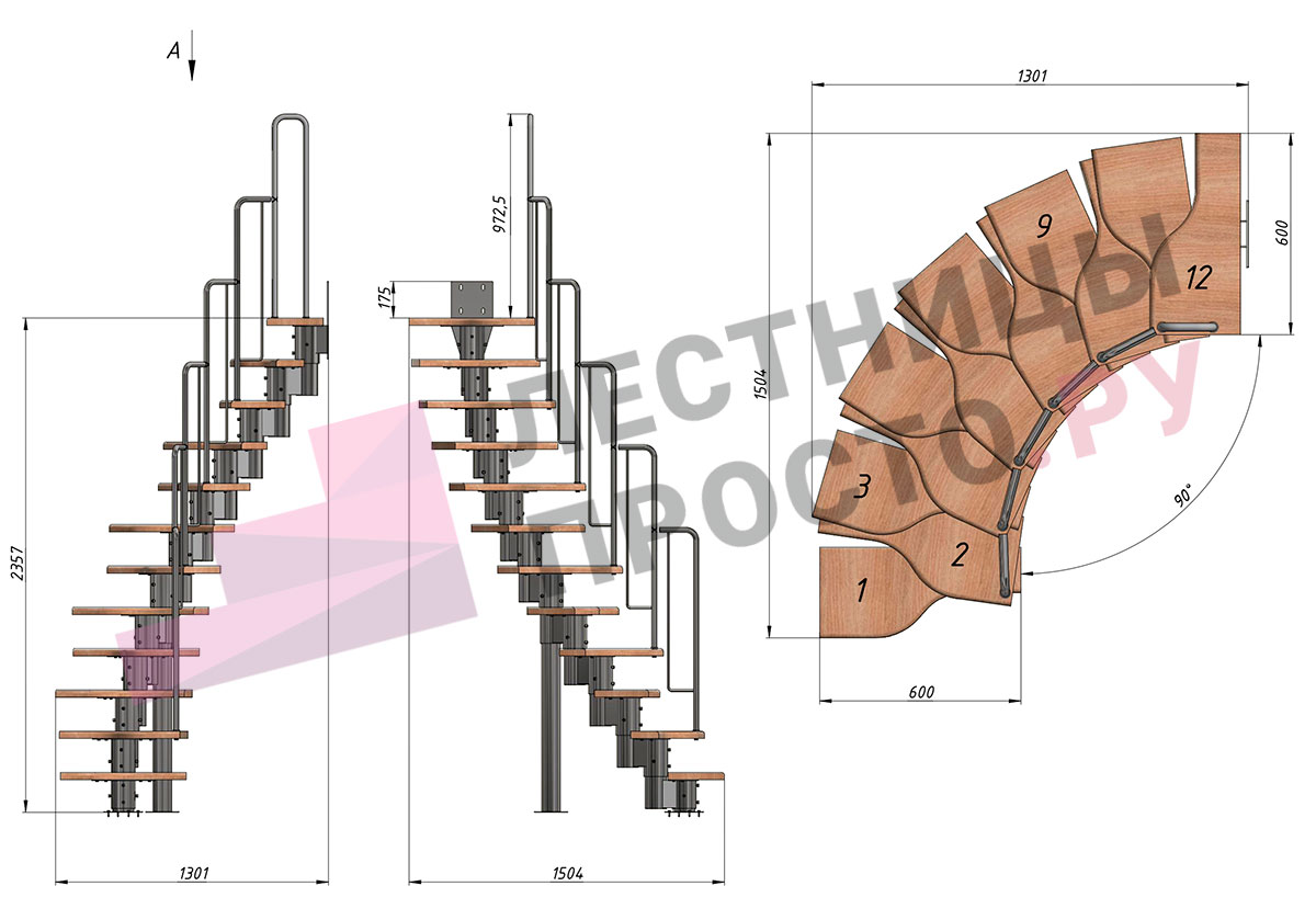 Лестница Prosto Urban Grey г-образная гусиный шаг 600 мм, h216-312 см (12 ступеней)
