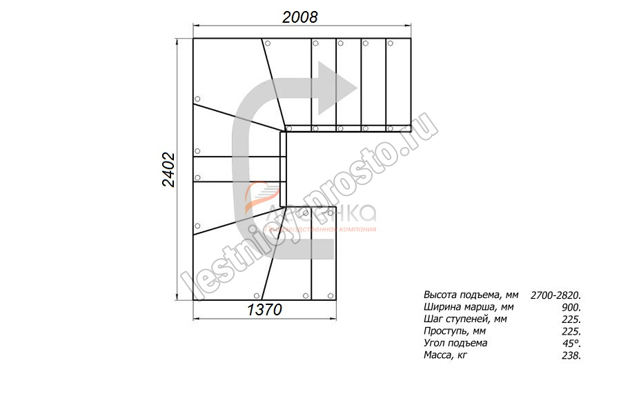 Модульная лестница Спринт 225 2700-2820, Серый, Сосна, Крашеная, Без Ступений