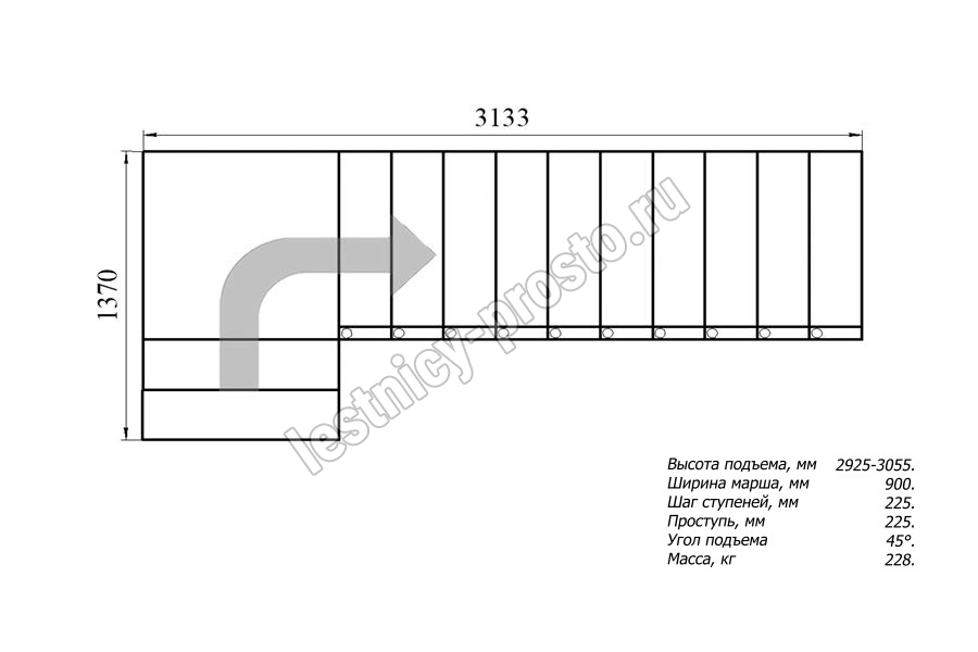 Модульная лестница Статус 225 2925-3055, Серый, Сосна, Крашеная, Без Ступений
