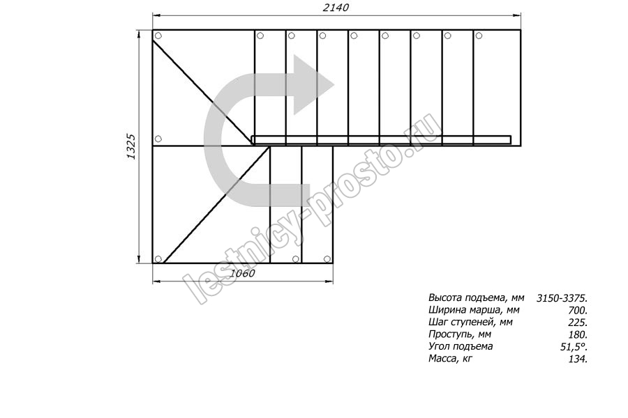 Модульная малогабаритная лестница Эксклюзив 3150-3375, Черный, Сосна, Крашеная, Без Ступений