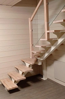 Стеклянная лестница из ясеня LP-2935 с металлическим каркасом