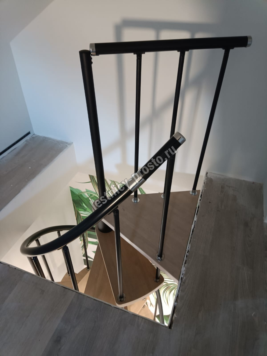 Стальные стойки Ф25мм (по одной на ступень) + ПВХ поручень Ф50.