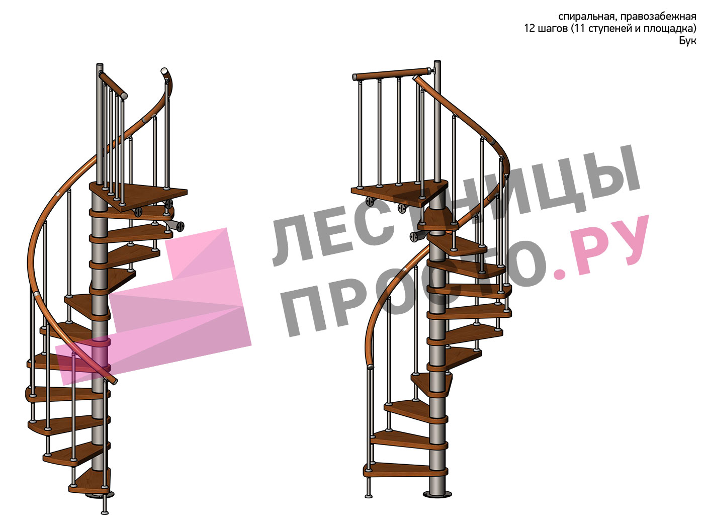 Правая, d=120см, 11 ступеней + площадка