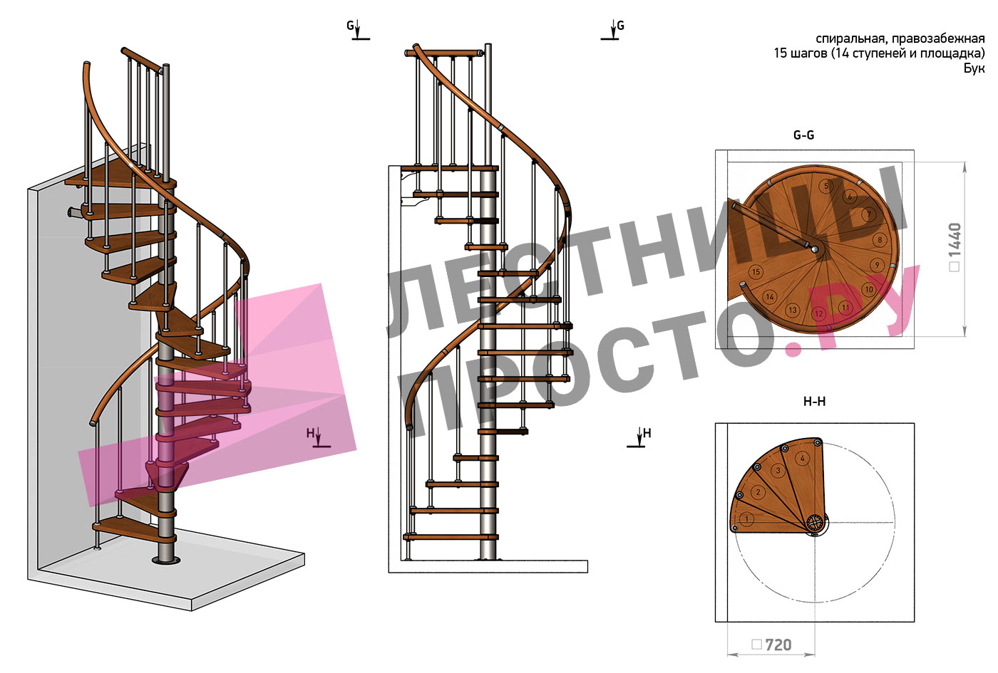 Высота ступеней регулируется с шагом 3 мм. в пределах 217-247 мм., благодаря чему, лестница прекрасно подгоняется под необходимую высоту.