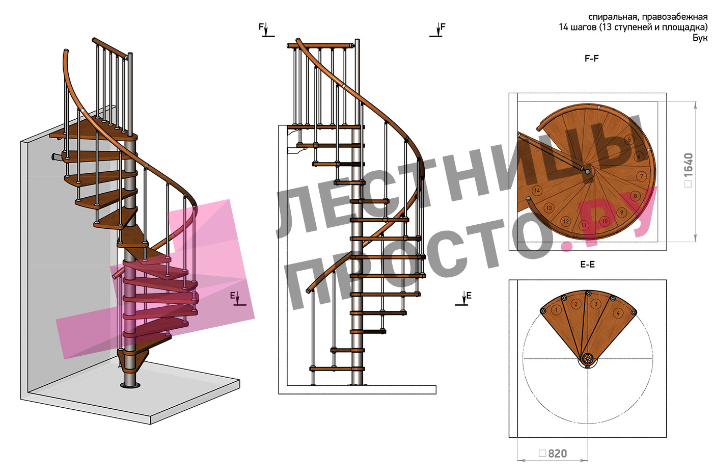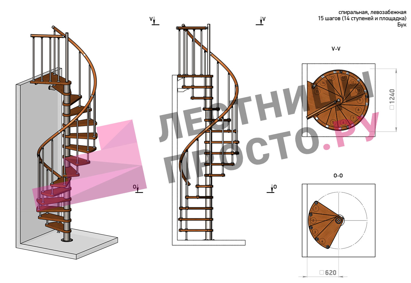 Элементы каркаса, ограждение, ступени, площадка, необходимый для сбора лестницы крепёж.