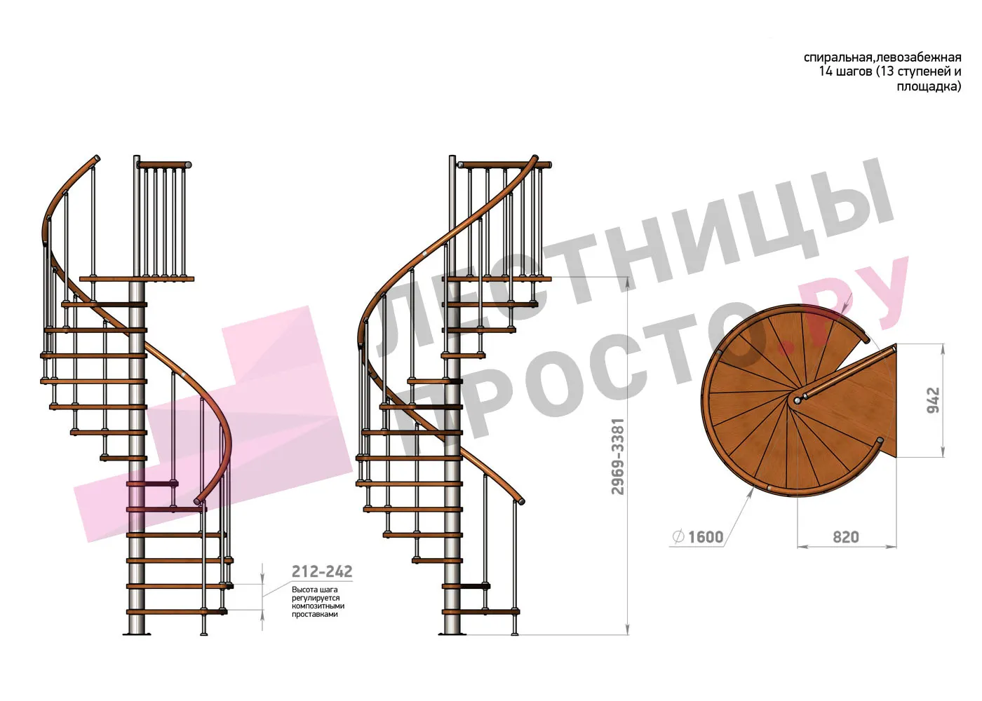 Винтовая лестница Prosto Spiral White/Высота 2545 - 2898 мм