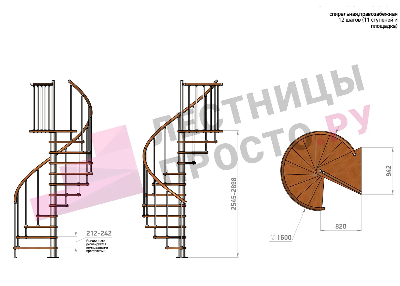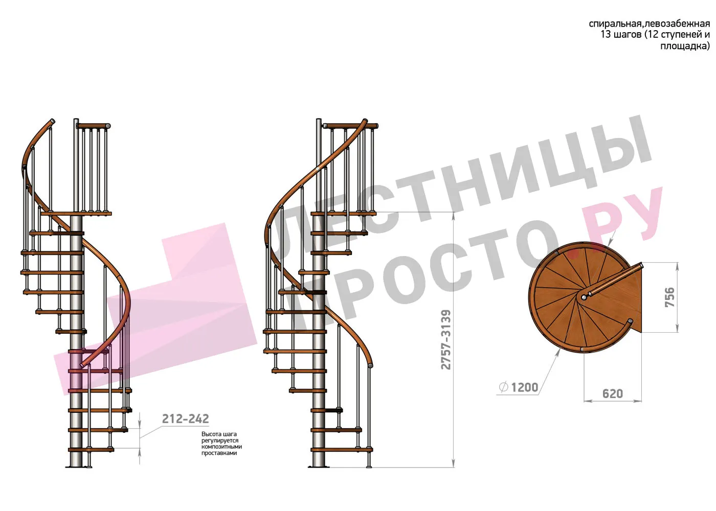 Высота ступеней регулируется с шагом 3 мм. в пределах 212-242 мм., благодаря чему, лестница прекрасно подгоняется под необходимую высоту.