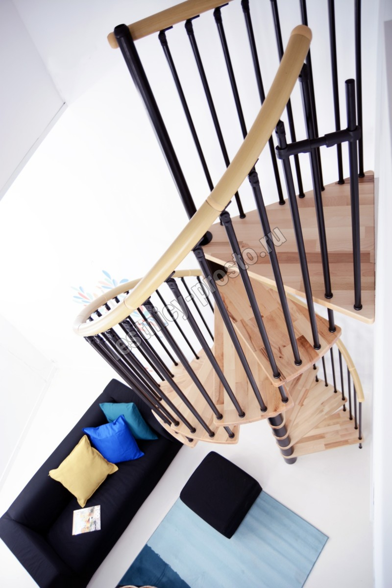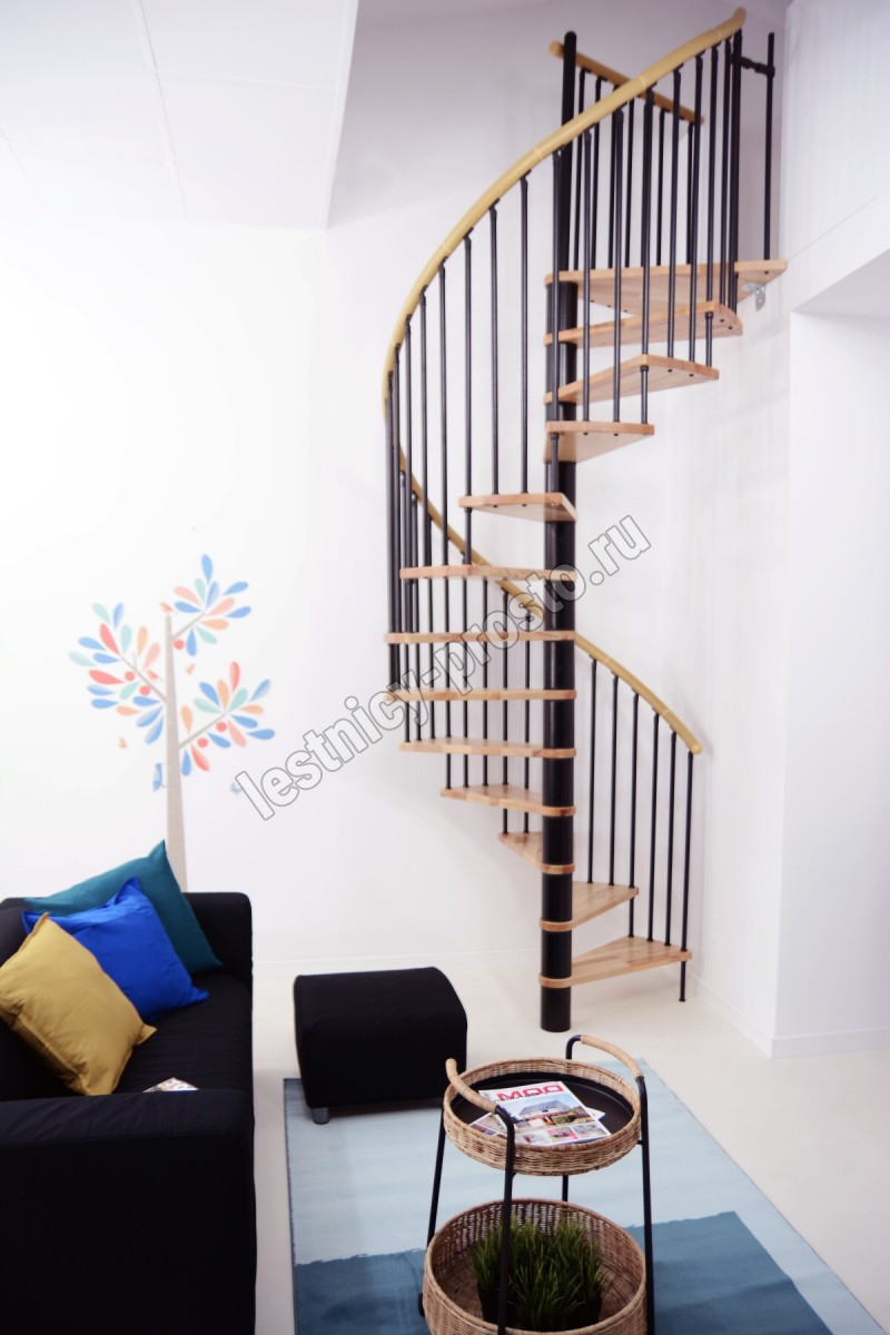 | Винтовая лестница SPIRAL WOOD d120 см, черная, лакированный бук |