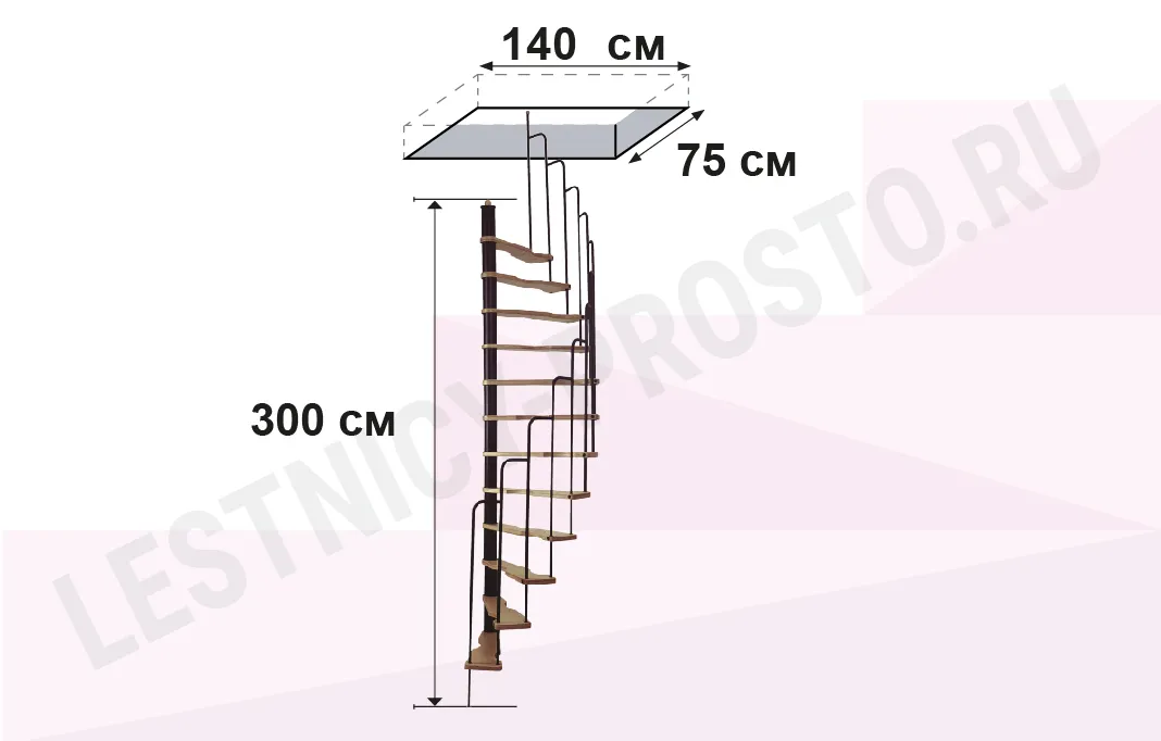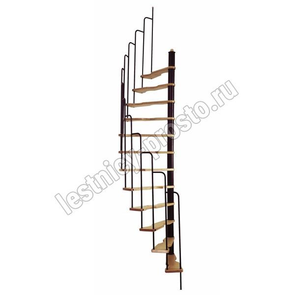 Компактная надёжная лестница. Ступени толщиной 30 мм, изготовлены из массива берёзы по технологии Multiplex, лакированные. Все металлические части оцинкованы, горячим способом и покрыты порошковой краской - черного цвета; Лестница имеет надёжную несущую стальную конструкцию.