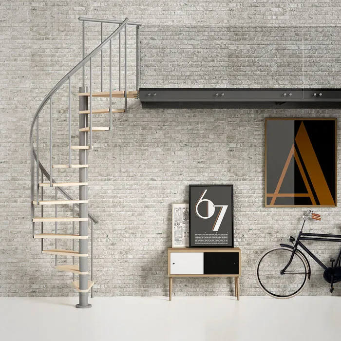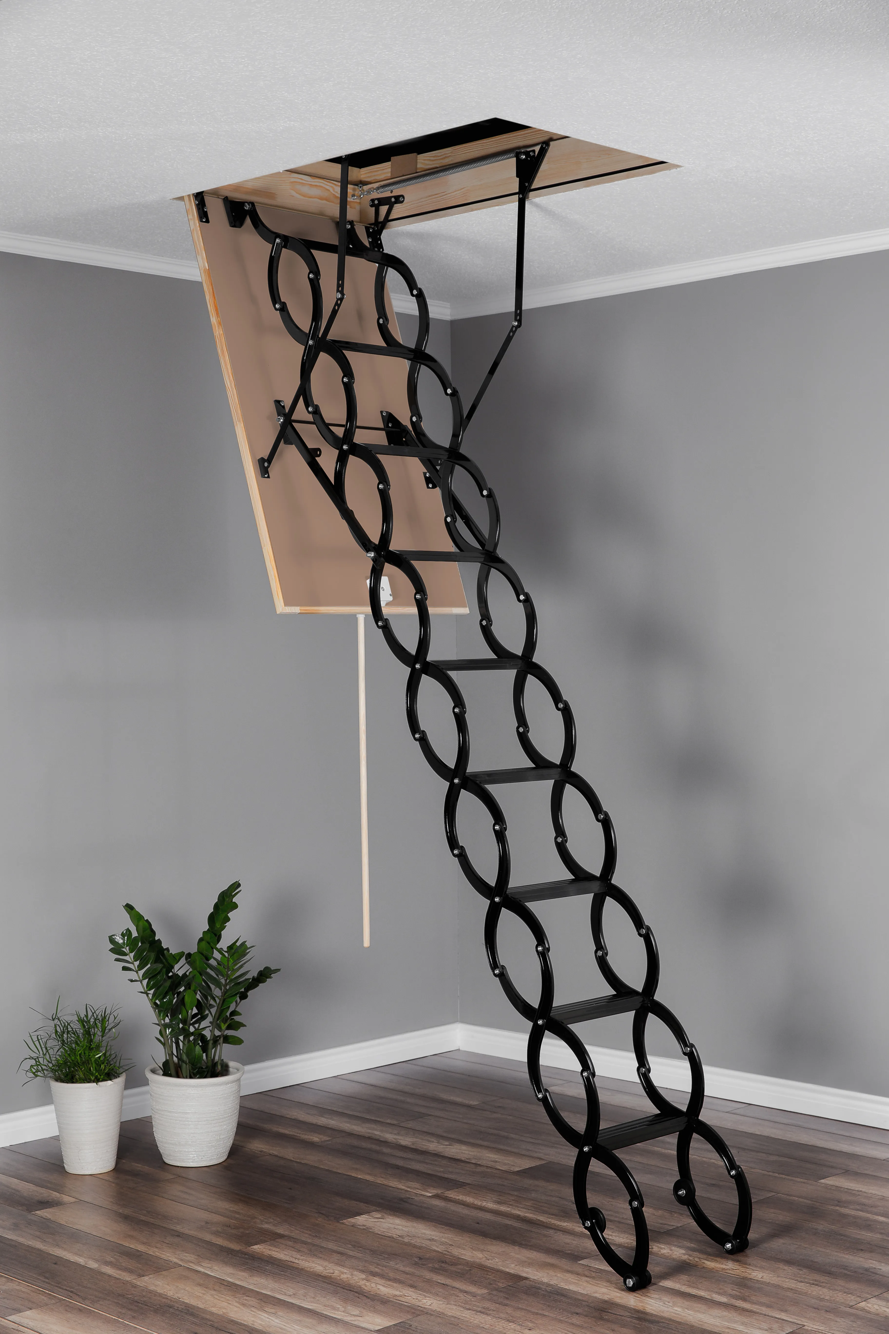Благодаря возможности регулировать высоту шага с помощью пластиковых вставок (входят в базовый комплект), высоту лестницы можно варьировать в пределах от 2860 до 3090 мм. Кроме того, купив дополнительную секцию для этой лестницы, можно поднять высоту до 3320 мм. Ступени выполнены из сращенного дуба, покрыты износостойким твёрдым бесцветным лаком. Каркас серебристого цвета. Под заказ возможно изготовление лестницы другой расцветки.