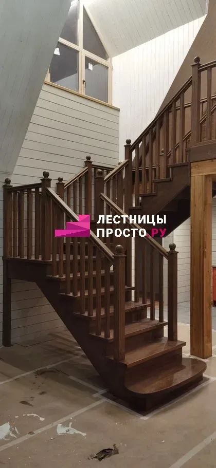 Лестница LP из сосны на второй этаж с поворотом на 180 градусов