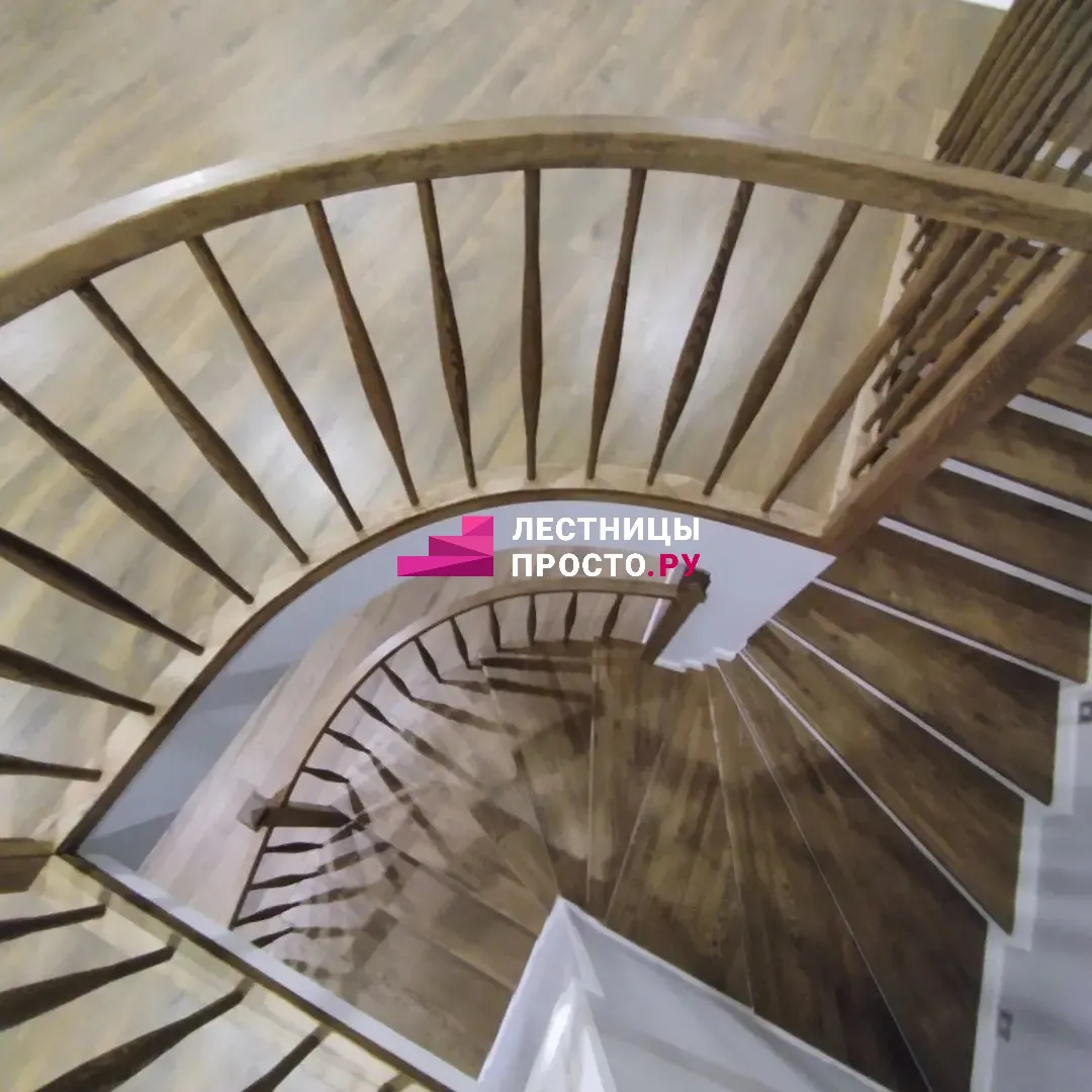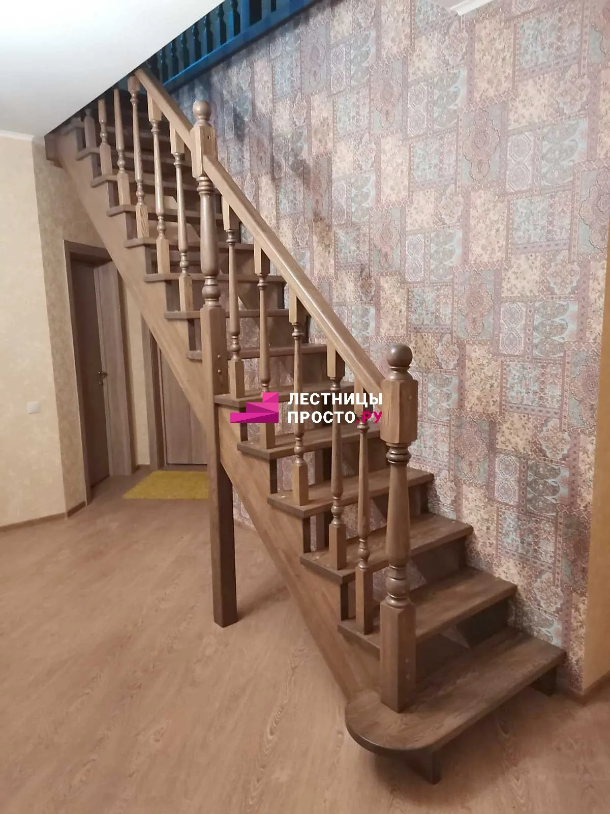 Лестница LP из сосны на второй этаж с поворотом на 180 градусов
